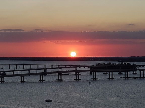 Beautifully decorated condo in the downtown River District. This unit with the most square foot feels like a single-family home. Two Master suites that lead to your wrap around balcony. You will have sunrise and spectacular sunset views. Real wood floors flow from your private foyer throughout the home. This is being sold turnkey so you can just pack your suitcase and relax. There is extra air-conditioned storage in the attached parking garage. Other resort style amenities include pool, hot tub, fitness room, sunset party room, billiards, tennis/pickleball, kayak storage and launch, bike storage and social events. Close to downtown with all the shops, theater and restaurants. There is a seasonal free trolley that will take you downtown. You are also close to I-75 and the airport.