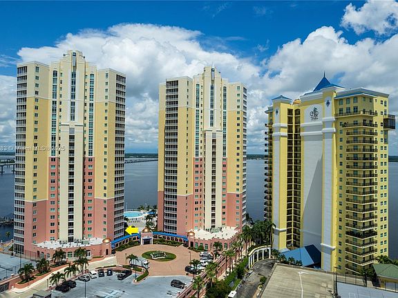 Experience resort-style living at its finest in this luxurious 4th-floor condo on the River Promenade in SWFL paradise — with 6 months of HOA fees PAID for any executed offer in November 2025! This gated community offers concierge, security, infinity pool & spa, fitness center, pickleball/tennis, library, theater, billiards, dog park & more—plus cable, internet, water & trash included; you pay only electric! Just minutes to vibrant Downtown Fort Myers with free seasonal trolley. This spacious 1,663 sq ft, 3 bed + den, 2 bath unit features brand-new luxury vinyl flooring, crown molding, quartz kitchen with new shaker cabinets, stainless appliances, fresh paint & wrap-around balcony with stunning river & city views. Includes in-unit laundry, storage, covered parking, newer AC & water heater.