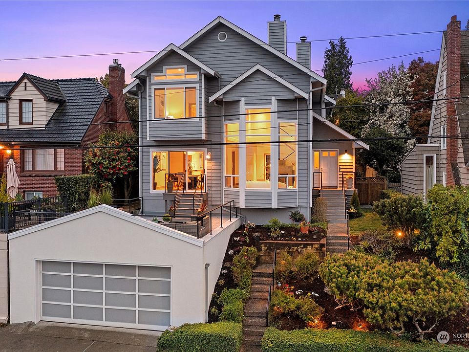 Grand ceilings, spacious rooms, and breathtaking views are just the start for this home. The welcoming foyer leads into elegant living/dining spaces complemented with fireplaces. The open kitchen impresses with wood cabinets, new countertops and stainless appliances. From the back deck, take in the serene backyard, perfect for gardening and relaxation. Upstairs are 3 bedrooms and 2 full baths, with the primary suite featuring a luxurious five-piece bath w/jetted tub, walk-in closet, and panoramic views. The lower level offers entertaining, laundry, and storage space, with a 4th bedroom/office and entry to the two-car garage. Enjoy quick access to amenities, DT & West Seattle. This incredible home is ready for its new owners. See it today!