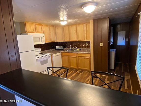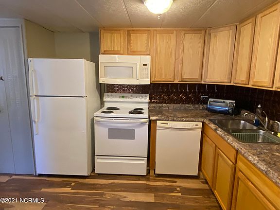 Manufactured home on large 100' x 140' lot with carport and storage building. Home offers 2 bedrooms, 1.5 baths and addition with an extra room and large living room lined with windows for lots of light. New LVP flooring and remodeled kitchen with all major appliances included. Existing furnishings will remain. Keep the existing home or replace it with your new one. Located just minutes from Holden Beach and shopping. Call now to make your appointment to see it.