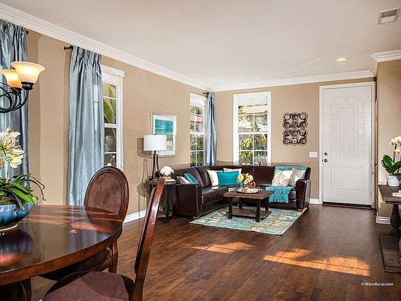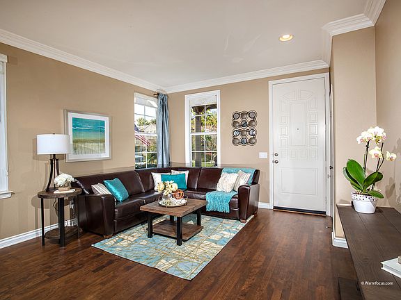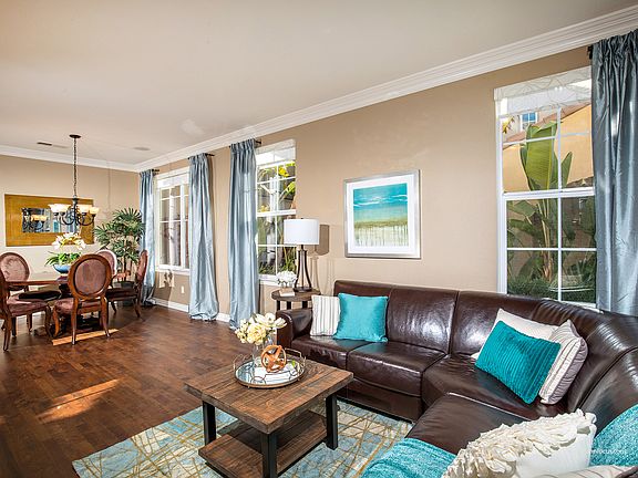 Immaculate highly upgraded Bressi Ranch gem tucked away on private cul-de-sac street. The large chef’s kitchen flows into the family room, which allows everyone to be part of the action. Versatile floor plan with one bedroom & full bath on first floor & large loft upstairs. Rich cabinetry, slab granite countertops, stainless steel appliances, gleaming hardwood floors, custom tile, plush carpet, custom window coverings, surround sound, custom pavers, outdoor fire pit & vanishing screens. Walk to schools, parks, community pool, clubhouse & shopping.