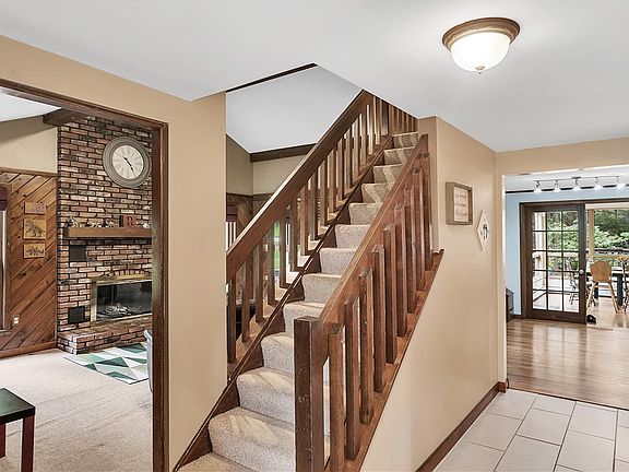 Perfectly tucked on a wooded lot at the end of a private cul-de-sac, this home perfectly marries a rustic, homey feel with a modern, bright ambiance. Vaulted ceilings sprawl above many of the rooms creating attractive angles as well as spaces. A brick woodburning fireplace offers a handsome focal point to the family room while the living room features plenty of windows highlighting the neutral color palate. The family chef will adore the stainless appliances - complete with a 6-burner stove! The pass-through window looks out to the great room - a flexible space showcasing floor-to-ceiling windows & boasts a coffee bar, woodburner, access to your back deck & panoramic views of your English garden-like surroundings. The newly-finished walk-out basement offers a potential 5th bedroom, full bath, convenient home office & an ideal spot for an in-law suite. Outside, the hand-laid stone pathways lead to various nestled & shaded spaces you're sure to adore! A warranty covers it all!