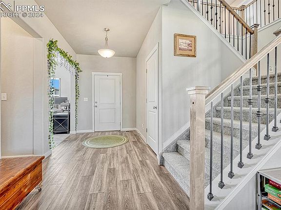 Welcome to your future home in Colorado Springs, where comfort meets convenience! This charming four-bedroom, three-bathroom house is a new listing that's sure to catch your eye. Step inside and discover a unique floor plan that sets this property apart. The primary bedroom offers a cozy retreat, while the additional bedrooms provide ample space for family or guests. With three bathrooms, morning rushes will be a thing of the past. A very spacious loft area is the perfect place for an additional office, play room or studio with pretty amazing views of Pikes Peak as an added bonus. For those who love the great outdoors, this home doesn't disappoint. The backyard is a true oasis, featuring low-maintenance turf and 6-foot fencing for ultimate privacy. It's the perfect spot for summer barbecues or simply relaxing with a good book. Energy efficiency is a top priority here, with solar panels installed to help keep those utility bills in check. Talk about a bright idea! Location, location, location! This property boasts close proximity to all amenities, making daily errands a breeze. Plus, you'll be just a stone's throw away from Peterson Air Force Base and Colorado Springs Airport – perfect for frequent flyers or those serving our country. Location, location, location! This property boasts close proximity to all amenities, making daily errands a breeze. Plus, you'll be just a stone's throw away from Peterson Air Force Base and Colorado Springs Airport – perfect for frequent flyers or those serving our country. The neighborhood is a gem, with easy commute to schools, recreational facilities, dining and healthcare. Nature lovers will appreciate the proximity to Remington Park, ideal for weekend picnics or morning jogs. Great opportunity...assumable loan! Why wait? This home isn't just another property, it's a place to call home. Come see for yourself and prepare to fall in love with Colorado Springs living.