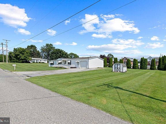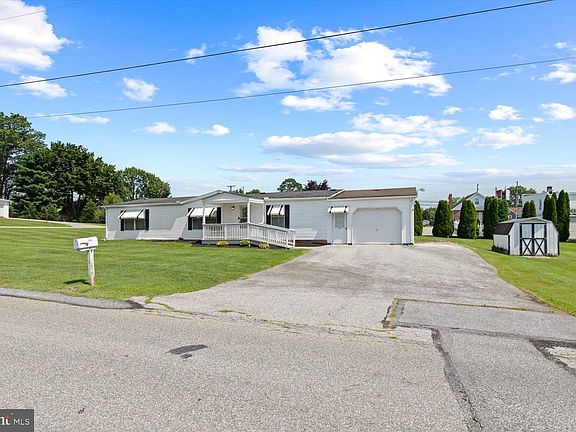 Move in ready maintenance free one floor living in this 3 bedroom and 2 full bath manufactured rancher home in the Dover Area School District is poised on a spacious corner flat lot affixed to real property. The large open family room with vaulted ceilings leads to a sizeable kitchen with a breakfast bar and dining area accessing a wonderful outside covered patio. All bedrooms have large walk-in closets. The laundry room is conveniently located off the kitchen and the master bathroom and also connects to the outside covered patio. The oversized one car garage with additional workspace/storage has inside access plus two additional outside accesses in the front and rear of property. The front of the property has a small, covered deck with ramp and railing. There is a large crawl space below which provides for additional storage. The natural gas furnace and central air are new as of 2022. This property’s location is full of conveniences; grocery store, pharmacy, restaurants, Grandview Golf Course & Brewvino Restaurant and within walking distance (1/10 of a mile) to Dunkin’ Donuts & Domino's Pizza. Set up a showing today!