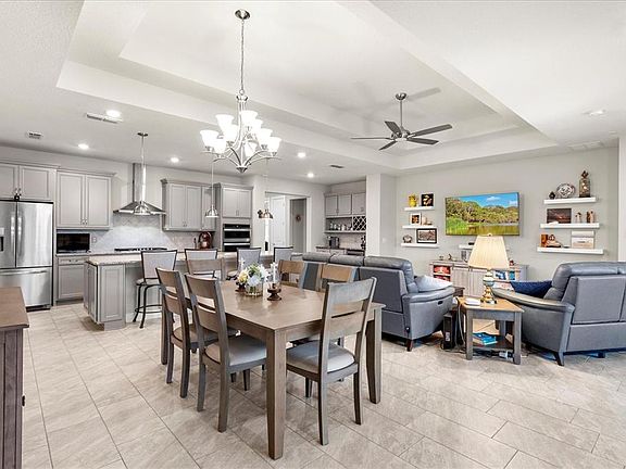 Welcome to your Florida dream home in Del Webb Sunbridge, a vibrant, guard-gated 55-plus active community where resort-style living meets everyday convenience. Built in 2020 with an emphasis on quality and comfort, this highly desired Stardom model (with 3 car garage and extended lanai), single-story home offers four bedrooms and 2½ baths across a thoughtfully designed 2,321-square-foot floor plan. From the moment you arrive, lush landscaping, a paver driveway and three-car garage set an inviting tone. Go inside to discover airy tray ceilings, neutral tile floors and abundant natural light. The open living and dining areas flow seamlessly into a gourmet kitchen adorned with granite countertops, a gas cooktop, microwave, convection oven, dishwasher and refrigerator with natural gas dryer. A large center island with pendant lighting invites conversation and casual dining, while a walk-in pantry keeps everything organized. The built-in dry bar and beverage station are ideal for entertaining. Just off the foyer, a fourth bedroom serves as a spacious home office; simply add a closet and you have a true fourth bedroom. Flexibility that adapts to your needs. The primary suite offers serene views, plush carpeting and a spa-like bath with dual sink vanity, solid-surface counters and an oversized glass-enclosed shower with bench seat. You’ll love the enormous walk-in closet for effortless organization. All bathrooms have quartz countertops. Two additional guest rooms share a beautifully appointed full bath, while a convenient powder room near the living area accommodates visitors. The laundry room includes gas dryer hook-up, extra storage and space for fitness equipment. Sliding doors extend the living space onto a 35-foot covered and screened lanai, creating an indoor-outdoor sanctuary. The covered area is ideal for alfresco dining, while the open area, with travertine pavers and soft landscape lighting, provides plenty of room for container gardening or a morning yoga session. Additional features include central heating & cooling, gas tankless water heater and in-wall pest-control system. HOA fees cover lawn care, cable, internet and 24-hour guard service, making life effortless. Just minutes from Lake Nona, Medical City, Orlando International Airport and major highways, this property delivers tranquility and convenience. Del Webb Sunbridge is renowned for its exceptional amenities and active-adult lifestyle. Residents enjoy the 27,000-square-foot Hammock Club with a resort-style zero-entry pool, lap lanes, resistance pool, heated spa and Sabal Tavern restaurant with outdoor seating. Stay social with a ballroom, arts and crafts rooms and a demo kitchen for cooking classes or meet friends at the outdoor amphitheater and fire pits. Fitness enthusiasts appreciate the fully equipped fitness center, group-exercise studio, pickleball and tennis courts. There’s even a dog park and covered grill pavilion for year-round gatherings. The community’s Lifestyle Program offers diverse clubs, cultural events, concerts, seminars and game nights to keep you engaged and active, ensuring your social calendar is as full as you desire. Why settle for the ordinary when you can live in a home that embodies comfort, style and resort-caliber amenities? Schedule your private tour today and experience the Del Webb Sunbridge lifestyle for yourself.