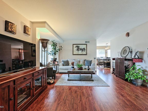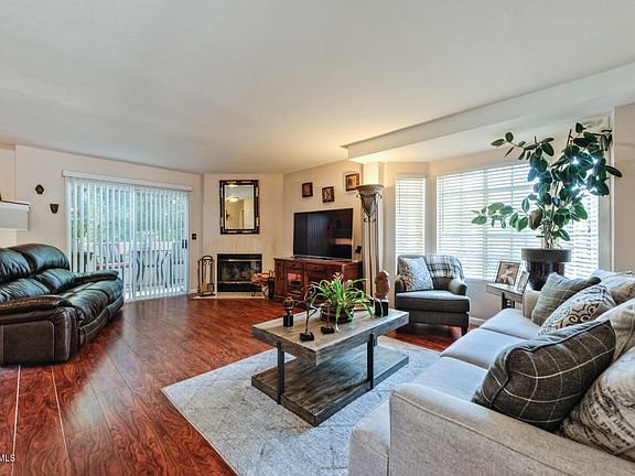Beautifully maintained and updated 3 bedroom 2.5 bathroom end-unit townhome located in East Simi Valley across from the Simi Hills Golf Course. The main floor has an open living space with laminate wood flooring, a fireplace, and access to the balcony overlooking the pool. A bright kitchen with stainless steel appliances offers plenty of cabinet space and is adjacent to the dining area. An updated guest bathroom is also located on the main floor. Upstairs is the generous sized master bedroom with high ceilings and a large walk-in closet. Down the hallway you will find 2 additional bedrooms and a full bathroom. Also included, is a direct access oversized 2-Car garage with upgraded flooring making this a perfect place to call home! This is a well maintained smaller complex with a sparkling pool and spa, plenty of guest parking, and quick access to shopping and the 118 fwy.
