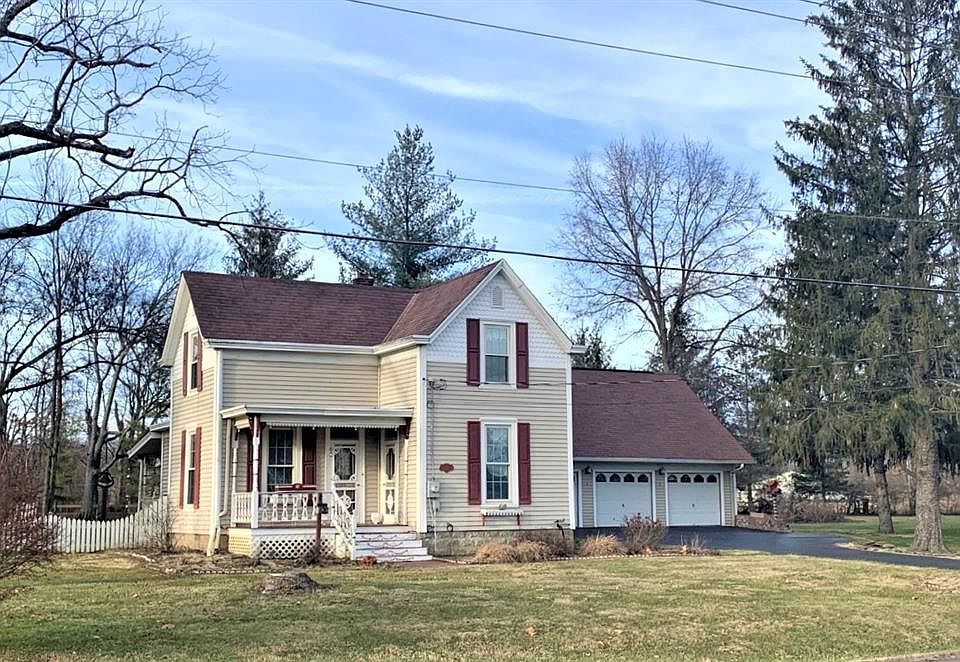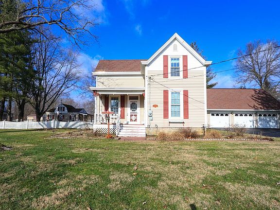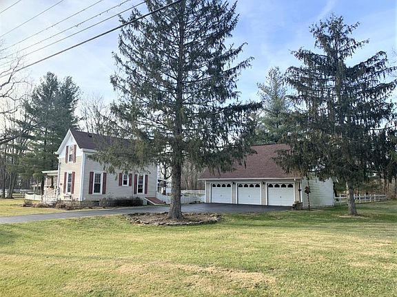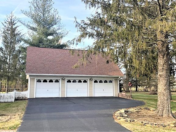 Great opportunity to own this fantastic 5 acre farm! 10 stall horse barn with 2nd floor. Chicken house w/covered deck overlooks stocked fenced pond w/dock. Fenced horse pasture and 4 car detached garage. Very charming 2 story farm house has 2 covered porches and hardwood floors throughout. Owner/Agent.