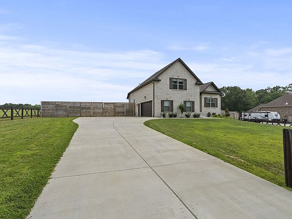 Beautiful all brick home on 1.2 acre lot is just 2 years old! No HOA! Fantastic location with a short drive to Nashville and Clarksville via Interstate 24. Enjoy the front porch view. Open floor plan and lots of upgrades in this home including stone fireplace with shiplap, laminate flooring, laundry room with negotiable W/D, and oversized side-entry 2 car garage. Kitchen has island/breakfast bar, granite countertops, gas cooking, pantry, stainless appliances including refrigerator. Bonus room over the garage has plenty of space for recreation and quiet time. Primary suite has trey ceiling, garden tub, separate shower, double vanities and walk-in closet. Huge backyard with 8 ft privacy fencing and covered patio. 60x30 gravel pad for future garage/workshop. Some furniture for sale
