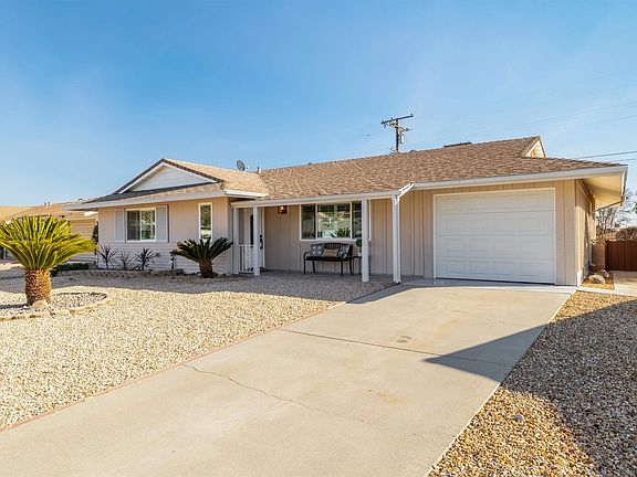 LOCATION, LOCATION! Elevated Lot overlooking the gorgeous rolling hills in Menifee! Breathtaking Views that are here to stay and rare to find! Welcome to your practically brand new, remodeled home! Walking up your Newly Tiled Walkway you will immediately notice the All White Brand-New Dual Pane Windows and Plantation Shutters highlighting the freshly painted Exterior. Once inside you'll surely fall in love with the soft color palate that perfectly complements the New Light Oak floors which flow seamlessly throughout the home and are highlighted by an abundance of LED recessed lighting, each room controlled by its own dimmer switch. Prepare to be STUNNED by the Newly Installed Shiplap Electric Fireplace in the Living Room that opens up to your Beautiful Kitchen with New Quartz Countertops, Honed Marble Backsplash, Roll Out Drawers for all your pots and pans, plus Maytag Appliances including a Double Oven and Glass Flattop Range. Right off the Kitchen is your Expanded Laundry room with New Washer Hookups, beautiful Marble Backsplash and Additional Cabinetry and Countertop Space plus matching Floating Shelves that will make Laundry a breeze, storage is no issue here! Both bedrooms have custom shelving in the closets and both Bathrooms are remodeled with Resort Style Finishes. The French doors off your Dining Room lead out to a Gorgeous fully functional Backyard with an Oversized Covered Patio with Epoxy Concrete, Custom Pavers, Wraparound Planters and Artificial Turf, all Maintenance Free! Equipped with a Newer Roof, Carrier HVAC System & New Garage Door. 55+ Community LOW HOA