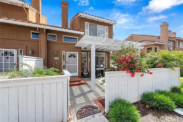 Nicely upgraded corner lot townhome with attached 2 car garage. As you enter into the gated front yard, you will love the colorful flowers and lush plants around the patio which is perfect for relaxing or a BBQ. Inside is beautiful distressed wood laminate flooring, a spacious living room with fireplace, dining room and upgraded kitchen. The kitchen is beautifully updated with travertine floors, granite counters, subway tile back splash, newer wood cabinets and sit down breakfast bar. Upstairs master bedroom is light and bright and has a walk in closet and beautifully remodeled bathroom complete with crushed marble counters, new cabinets, new fixtures and new distressed grey wood style tile flooring. The other 2 bedrooms are nicely appointed with wood laminate floors, wood blinds and share an upgraded bathroom with a crushed marble counter, new cabinets and tub/shower combo. Walk to nearby community pools, parks and enjoy membership to Lake Mission Viejo where you can enjoy beaches, boating, fishing, events and more! Low tax, no mello roos, top rated schools and 15 minutes to the beach makes this the perfect place to call home!