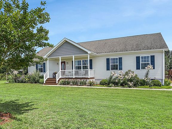 This ranch-style home with 3 bedrooms & 2 baths provides ample space for comfortable living. Situated on an almost 1-acre property, there is plenty of outdoor space for entertaining or enjoying peaceful surroundings. The heart of the home features a beautifully upgraded kitchen with elegant granite countertops, stainless appliances, & maple cabinetry. An open concept design seamlessly connects the kitchen to the living and dining areas, creating the perfect space to gather and entertain. The primary bedroom boasts a spacious en-suite bath with a relaxing soaking tub, adding a touch of luxury to your routine. Two well-appointed bedrooms offer comfort and privacy for family or guests. Convenience is elevated with a separate laundry room/mud room, complete with a sink for added functionality.