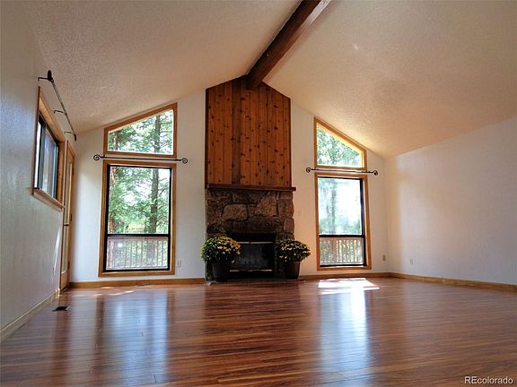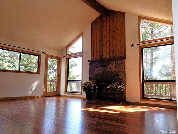Open Floor Plan, Fresh Updates Throughout, brand new Shiny composite King Koa floors, carpet, and paint, Ready for you today! Soaring Vaulted Ceiling and abundant glass lets the outdoors in! UNIQUE location combines mountain lifestyle and town conveniences, 5 Minutes or less to: Elementary, Middle, and High Schools, also RTD Park & Ride, Hwy 285, groceries, hardware, dining, entertainment, open space trails, and services. Entertain on the 468 Square feet of Redwood Deck and enjoy fresh air, Colorado sunshine, tall timber, and wildlife. Beautiful forest full of pine, fir, and aspen trees. Efficient kitchen workspace with silestone counters, deep sink, and solid cabinetry. Easy central Forced-air Natural Gas heating and a wood burning fireplace for fun not a daily chore. New quiet garage door openers, Walk-out basement, Low maintenance mountain standard yard, storage shed, and a greenhouse. Gentle driveway and plenty of parking for all the toys. ACT FAST!!