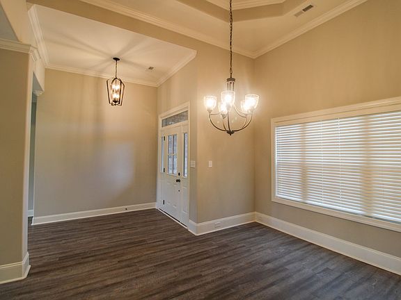 This great floor plan features trey ceilings, custom cabinets with granite countertops and stainless steel appliance package, vinyl plank hardwood in main areas, tile in wet areas, split floor plan with isolated owner's suite that features a private bath and walk-in closet, spare bedrooms share a hall bath and a spacious bonus room! This home has a two car side entry garage, sodded yard and nice covered back porch!