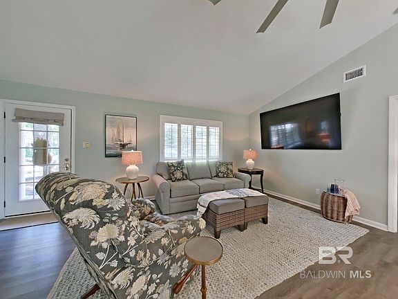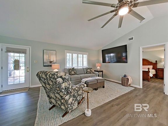 Welcome to paradise! This adorable, completely updated 3bdrm/2bth is a must see in Orange Beach. This property is located in the popular East Orange Beach Subdivision, close to city schools, city recreation center, city tennis courts, city pool and the community fishing pier. This coastal cottage offers, lvp throughout, granite in the kitchen and baths, custom tiled backsplash in the kitchen, SS appliances, custom tiled walkin shower in primary w/ large primary closet and barndoor accent, large living and breakfast area which flows into the enclosed h/c sunroom, the previous owners converted the garage into an additional bedroom w/ a floor to ceiling glass door. Large Storage Shed in the backyard conveys. The property is beautiful with large oaks that shade this incredible 100x200 lot that IS IN AN X ZONE! This property has so much to offer and will not last long at this price. Check out the virtual tour -https://view.ricoh360.com/cf58038c-93dd-4ac5-b245-1cff1fca5395?type=compact Buyer to verify all information during due diligence.