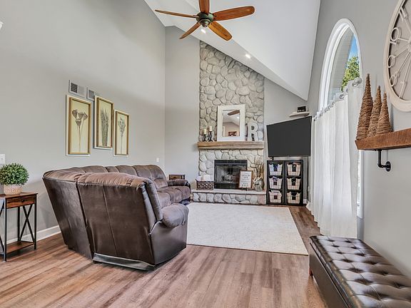 STUNNING Salem home! RARE FIRST FLOOR MASTER SUITE! This home has it all! Beautiful curb appeal, extra large driveway with RV/Boat parking and 0.42 acre lot! HEATED & finished garage w/epoxy floors! As you enter, you are greeted with a 2-story open living room with all new LVP flooring through-out. All updated paint, fixtures and stunning floor to ceiling stone fireplace. Beautifully updated kitchen & eating space. 1st floor laundry & convenient 1/2 bath. Spacious master suite with WIC and renovated ensuite. Upstairs you'll find 2 well-sized bedrooms, huge attic storage space and updated full bath. Full finished basement with rec room, bar, 2 rooms for storage/office and 1/2 bath. HUGE yard space with spacious deck, shed and fire pit. You will instantly fall in love! A must see!