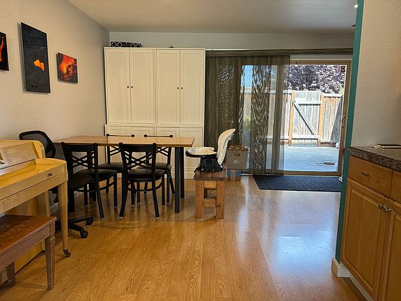 Beautiful end unit townhome with nearly an acre of community managed green space in front. Two covered parking spots just outside the back gate. The kitchen features all stainless steel appliances: dishwasher, microwave, glass-top range + oven, and a brand new refrigerator. Stone countertops and laminate floors downstairs are easy to clean, and the carpet upstairs is perfect for the 3 bedrooms. WASHER and DRYER included in unit! Master bedroom features a wonderfully spacious walk in closet. Each bedroom closet and the under-stairs area have custom designed shelving for optimal organization and storage. This townhouse is tucked into a safe and quiet neighborhood, away from major foot and car traffic. The west facing front door and windows mean you get fresh, cool air coming off the bay all year round. Beautiful mature trees surrounding the home provide shade and a calm outdoor space. The back patio is perfect for grilling or sitting in the eventing. Two sheds on the back patio are great for storing bikes, tools, and holiday decorations. If you have elementary school kids, Lorin Eden has amazing teachers and is literally a 6 minute walk for drop off (we walked our kids almost every day). Location, location, location! Easy access to 92 and 880. Be over the San Mateo bridge in 15 minutes even during rush hour. With kind and quiet neighbors all around, thoughtful updates throughout, and a spacious open home layout, you'll find this move-in-ready home a rare gem! Lease terms: Last month's rent due with deposit. No pets, no smoking allowed. Lease is 12 months minimum. Mandatory cleaning fee of $500 will be deducted from your deposit to deep clean after move out. Evidence of either smoking or pets within the unit will result in the forfeit of the entire security deposit.