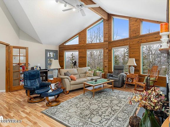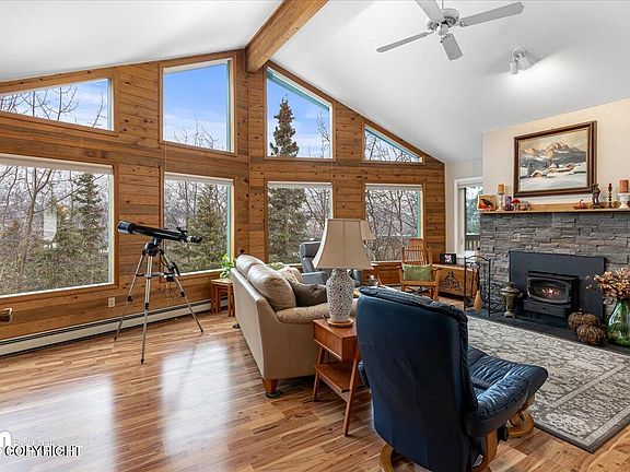 This tranquil space has been created over time into the perfect place to recharge. Surrounded by natural beauty and within an easy drive to schools, work and shopping. The custom cherry cabinets, luxurious master bath with just the right amount of space for family gathering or quiet moments while enjoying amazing views. If you're looking for everything Alaska living can provide, look no further.Don't miss the greenhouse or the high efficiency wood burning stove insert in the fireplace.