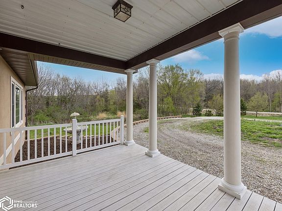Beautiful acreage (2.19 acres) on the west side of State Center has just been "sparkled": all fresh paint, improved lighting, lots of new flooring, professionally cleaned--even the windows, fresh mulch, etc.! This 2010 home has so much space with a SIZABLE foyer, LARGE open custom-kitchen with an amazingly HUGE island with granite countertops, SPACIOUS dining area, 3 bathrooms, 2 main floor ROOMY bedrooms, 3 lower GOOD-SIZED non-conforming bedrooms, living room, 2 family rooms (one up and one down), 2 storages areas, and an OVERSIZED double garage. The many stunning LARGE windows allow the sunshine to add the gift of natural light. A deck off the kitchen leads to the gorgeous outdoors with lots of landscaping areas, trees, and a creek. This property is worth seeing in person. Call to schedule a private showing!