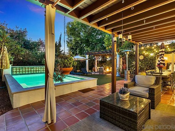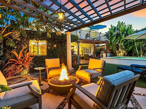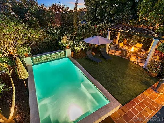 Step into this extraordinary Bay Park home, where stunning Mission Bay and ocean views from the primary suite and balcony are complemented by a great view of SeaWorld’s fireworks. The resort-style backyard is a true oasis, complete with a swim-current pool and spa, an outdoor kitchen, a pergola, lush professional landscaping, and decorative lighting—perfect for hosting weddings, gatherings, or simply unwinding in style. Inside, this remodeled 4-bedroom, 3-bathroom home offers a thoughtfully designed layout with an optional fifth bedroom or office. The chef’s kitchen is a culinary dream, boasting Viking appliances, granite countertops, a 6-burner stove, wine fridge, and abundant storage. The luxurious primary suite features a Jacuzzi tub, dual sinks, and custom closets, creating the ultimate retreat. Modern amenities include paid-off solar panels, a Type 2 EV charger, central heating and A/C, hardwood floors, and eco-friendly bamboo and cork flooring. The flexible layout includes a fenced side yard or dog run and a private entrance ideal for a home office, guest suite, first-floor primary bedroom, or potential ADU. Perfectly situated near top dining, shopping, schools, and with convenient highway access, this home is also a fantastic investment opportunity. The private guest suite is already generating income as a vacation rental. Additional features include space for RV parking with 30-amp hook-up and sewer connection, as well as fruiting trees such as a 5-citrus graft tree, Hass avocado, and Zutano avocado. The pool offers a controllable swim current and spa setting for