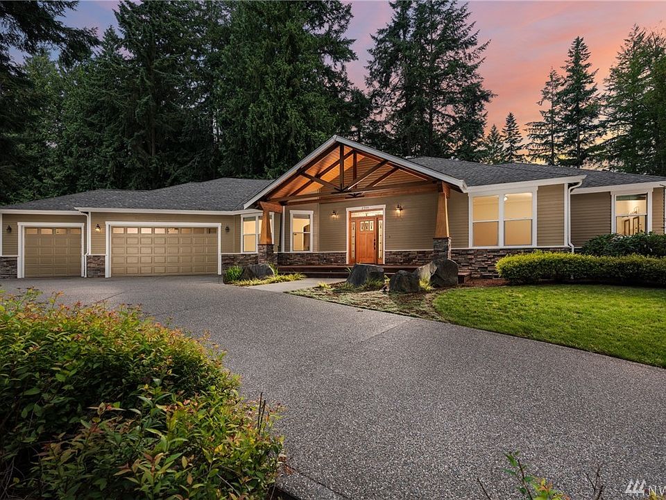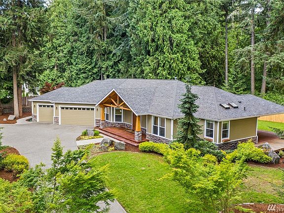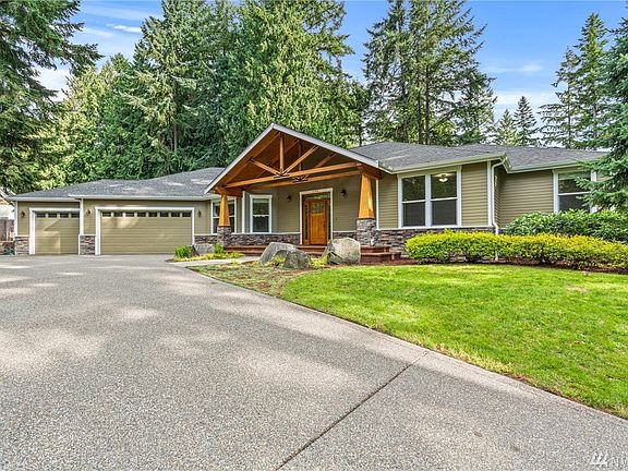 Sited on a large, elevated lot, this beautiful rambler benefits from a private and wooded setting, yet is minutes to shopping, amenities and I-5. A split bedroom plan offers privacy to the master suite and office/den at one end, remaining bedrooms/bath at the other. Imagine entertaining here, with the open kitchen/dining which flows to the covered rear deck with built in BBQ and fire pit. Generously appointed throughout-warm hardwood and slate flooring, built in storage, high end appliances.
