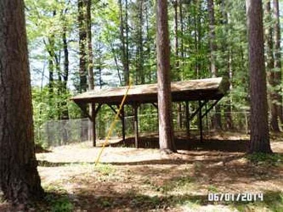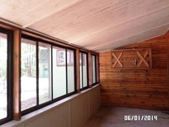 Whispering pines surround the cabin for a true UpNorth feel. 1-2 BR, 2 Ba home on full walk-out basement. Wooden floors throughout main floor with wood trim accents. Wooden beams highlight the cathedral ceiling and fireplace . Walkout Basement has separate room with egress window,ideal for play area or sleeping space. Furnace installed 2013; never been used. Relax on the deck overlooking the tranquil setting below. Detached 2 car cement garage. Fenced yard for the pets or kids, carport too.