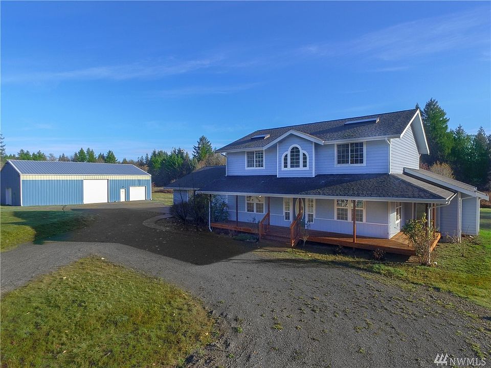 Beautiful 4 bed, 2.5 bath home on a LARGE 5+ acre lot w/ a HUGE 40'x60' Shop! The home features a stunning wraparound deck w/ a spacious deck on back also. Gorgeous double-sided stone fireplace between the den & living room. The kitchen boasts new granite countertops & tons of storage! Main floor bonus room & office! Bedrooms feature vaulted ceilings w/skylights, & Master Suite includes private bath. Shop w/ bathroom also! Rural setting just minutes from shopping, I-5 & a quick commute to JBLM!