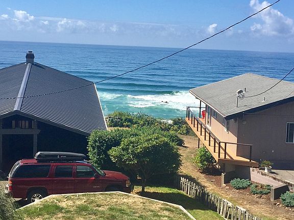 Located in an enclave of upscale beach homes and tucked away on a peaceful scenic lane this OCEAN VIEW duplex showcases SURF, SEA & SUNSETS. Each unit features 4 bedrooms 2 full baths, vaulted pine ceilings, wood burning fireplace and fabulous WHITE WATER OCEAN VIEWS plus a huge wrap around entertainment deck with your own garage. check it out as a coastal investment property as it is currently fully rented or keep a unit out for personal use. Public beach access to beautiful short beach is just a few blocks. Financials available on request.