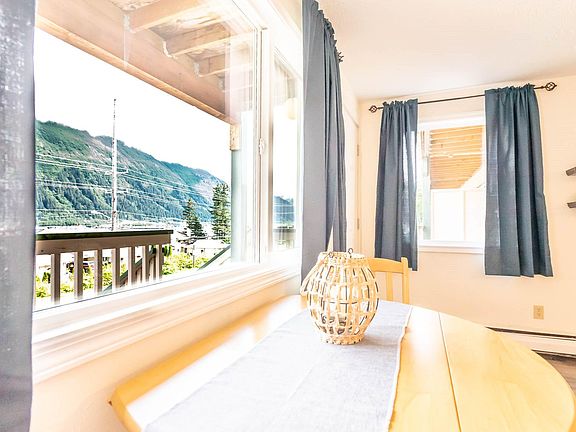 This clean and bright one bedroom, one bathroom Admiralty Condo provides affordable living at its finest! If you are looking for a cozy home that will help build equity at a price that is less than the cost to rent, this is the right place! Enjoy unobstructed views of the Gastineau Channel, downtown Juneau, and July 4th fireworks right from your private covered porch. This home features newer vinyl plank flooring in living room and kitchen, fresh paint throughout, newer stainless steel convection range, upgraded toilet, new vinyl flooring and newer vanity with an updated light fixture in the bathroom. The exterior of this condo has been freshly painted with a Tuscan color theme and is centrally located right on the bus line with easy access to Downtown and Douglas, shopping, and restaurants. The reasonable HOA dues include heat, hot water, water, sewer, garbage, building maintenance, snow removal for low cost living. Just a tenth of a mile from the bus stop, with ample assigned parking. Each condo has its own storage locker. This condo shares only one common wall and has easy access to the laundry room right next door! The HOA does not currently allow dogs but cats and other pets are fine.