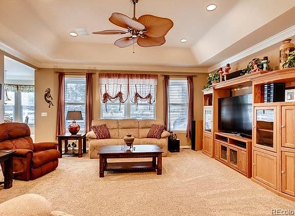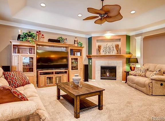 Beautifully maintained ranch style home in desirable Savory Farm. Built well by Sanford Homes with beautiful woodwork and details throughout. Mature landscaping with covered patio includes a gas grill hooked up directly to gas valve, stamped concrete patio and mature landscaping. The home has an open floor plan with great room open to kitchen area. Kitchen has eating space with bay window, a large island, and door to the backyard. Spacious laundry room/mud room includes additional storage, a large laundry table, laundry sink, and another door to the backyard. The elaborate master bedroom features a walk in closet, five piece bath, coffered ceiling and a sliding door to the backyard. An unfinished basement easy to complete with 3 garden windows. Plumbing has been installed for gas as well as electric to stove/oven and laundry area. Easy access to I-25, E-470 and Highway 36.