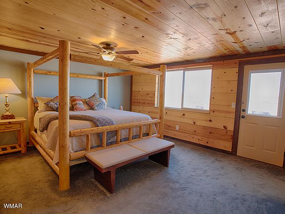 BONUS FULL BASEMENT (1,200 SQ. FT.) With two bedrooms and one full bath. Two other rooms one used as a work area and second as a storage, but could be used for rec. area for children. This 1,576 Sq. ft., open floor plan, home in Snowflake is situated up high on 3.82 acres and is perfect for livestock and has NO HOA. Enjoy amazing, year-round panoramic views through the extra large windows from the Knotty Pine, vaulted cathedral ceiling, great room. This custom home features beautiful wood floors and a modern kitchen adorned with a very large island, perfect for large get-togethers or as bar seating. This one-of-a-kind home is very energy efficient with its whole-house fan and its SIPS (Structural Insulated Panel System). Outside sports a functioning 4 horse stalls, corral and has plenty of room for a nice deck and outdoor kitchen.