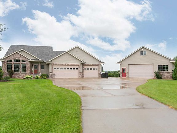 This home for sale in Zimmerman is spectacularly loaded with outstanding upgrades!First of all, the 32x40 detached garage offers additional storage for maintenance items while the oversized attached 3 car is heated and has hot and cold running water! Floor drains in both! Convenient!Anderson windows and doors are both useful and beautiful, in-floor heat and a dual-zone forced air and heating system are all for maximum efficiency.Warm wood flooring meanders through the dining area and kitchen with a big center island, raised panel cabinets, casual dining space, and plenty of storage. Vaulted ceilings offer an airy feel.2 walk-in closets are in the main floor master bedroom with a private and luxurious bath!A whopping 50x14 deck allows for views of the lush landscaping and paver fire pit to enjoy its warmth.