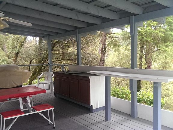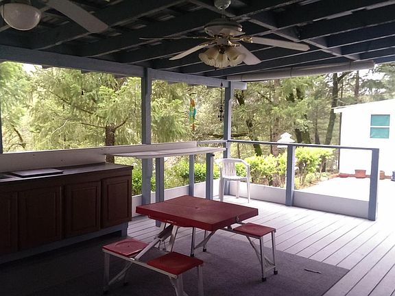 Your little mountain get-a-way in the trees. Over 2 acre parcel with a singlewide mobile that has a stick built addition on it. This property is squeaky clean! Several outbuildings including a large carport cover that has full RV hook-ups. Lot's of nice touches here. Beautiful view off covered patio, outdoor shower, manicured yard & fenced. Must be cash sale, no owner carry or financing available.