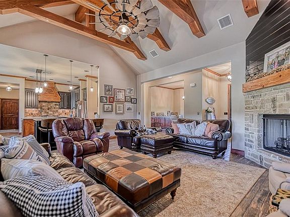 This property is truly breath taking. You have to see it in person to understand. This highly upgraded luxury rock/brick house was build in 2018 with 3500+ sq ft with 4 bedrooms, 4 bathrooms and a bonus room upstairs. This home offers large vaulted ceilings, granite counter tops, 2 living areas, formal dinning area and a beautiful kitchen. Amazing back porch that over looks a pond. On 20 acres of prestige premium land that is cross fenced with a mix of well kept/recent built fencing to include metal pipe and cable fence, barbed wire, wood post with metal, etc. 3 shop/out buildings once of which is used as an office, horse arena, cattle chutes and plenty of room for your equipment. Perfect for your horse and cattle operation with luxury living. 15 minutes from Purcell and 30+ minutes from Norman.