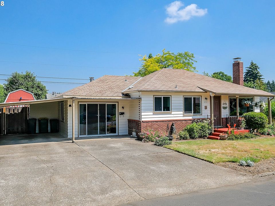 Beautiful one level. Remodeled kitchen with Quartz counters, custom cabinets, built in desk, stainless appliances. Updated bathroom with custom tile. Hardwood floors under carpet. New vinyl windows. Living room with fireplace & new chimney. Spacious master bedroom. Family room with mudroom/shop behind, used to be garage. Heat pump heats & cools. Private fenced yard with covered flagstone patio & large shed. EZ access to schools & shops.