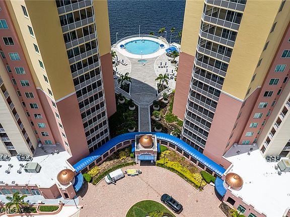 High rise living at its finest. This 8th floor condo overlooks the beautiful Caloosahatchee River and the newly renovated pool area. You have high ceilings and a spacious balcony. Enjoy dining, entertaining and watching the spectacular Florida sunsets on your shaded screened balcony. Condo has been updated with new vinyl flooring, fresh neutral paint throughout, new master bath update, 2 Walk-in closets in the master. Take your semiprivate elevator from the secure parking garage right to your private foyer. Resort style amenities include: infinity pool, hot tub, fitness room, Sunset party room, billiards, tennis, pickleball, air-conditioned storage, kayak storage and launch, bike storage, social activities, weekly food trucks. Free trolley runs November-May to take you downtown to the River District with all its shops, restaurants and theater. Schedule a showing today