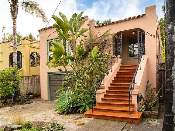 Tropical lush setting envelops this Spanish Mediterranean bungalow in the heart of vibrant Fruitvale. Vintage details blend seamlessly with a modern lifestyle. Elegant wrought iron entry leads inside to Spanish-styled architecture and craftsmanship throughout. Random plank oak floors, arched doorways, and large windows. Fireplace is the focal point, bookended with delicate sconces and detailed with original, hand made iconic Batchelder tiles. Stylish bathroom features 1" hexagon floor tiles and classic wall subway tiles. Kitchen boasts an open concept with modern finishes, beautiful cabinetry, and continuous counterspace. A garden oasis awaits you in the backyard - enjoy lovely seating areas surrounded by apricot, orange, lemon and lime trees plus mature succulents and more. About a mile from Farmer Joe's, Peet's, La Farine, casual carpool, transbay bus; under 2 miles to BART. This house is perfect for entertaining and relaxing, a true urban oasis. OPEN SAT & SUN. 3/9 & 3/10, 2:00-4:30