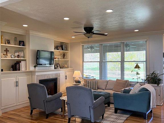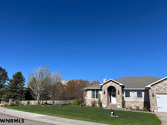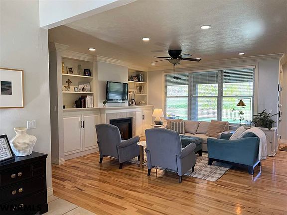 Custom built home with amazing view of monument and golf course, offering open floor plan featuring 9' ceilings & 8' doors, and crown molding. New gourmet kitchen in 2019 w/GE Cafe appliances, 56 x 117 Quartz island with seating for four, gas range, dual ovens, top of the line cabinets apron sink, open shelving and all the storage you could need. Kitchen opens to dining area with views of the monument, and steps to your outdoor living space. Take in the view from your new covered stamped concrete patio, featuring an outdoor kitchen with granite counters, built in Weber grill connected to natural gas, built in sound, two tvs, and space for a hot tub. Primary suite features tray ceiling, walk in closet, custom room darkening curtains, large bath with jacuzzi tub and walk in 6 head shower. All three bathrooms have granite countertops. Upstairs, the other two bedrooms are ready to be your office, guest room, or perfect children’s room near the primary. Main living area and one upstairs bedroom feature hickory hardwood flooring. Downstairs, enjoy high ceilings in the family room, which features a wet bar. Off the family room, you’ll find the recently updated custom home theatre, with stadium seating, custom couches, and surround sound. Two of the three lower level bedrooms offer walk in closets. Other unique features include whole home audio, new HVAC system with HE furnace and heat pump, air conditioner, whole home humidification and air purifier, R/O system, tankless water heater, security system, new roof, underground sprinkler system with smart internet controller, gas fireplace, and three stall garage with extra golf cart stall/door. SEE FEATURES LIST IN ASSOC DOCS