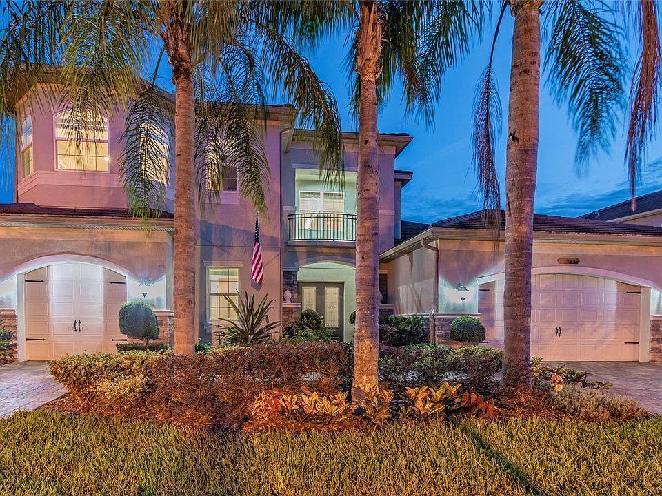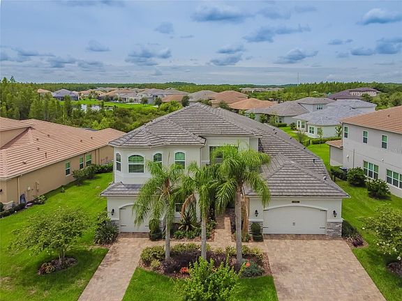Luxury living at its finest! Look no further than this highly sought after Sebastian model; featured in the Boulder collection built by GL Homes in the Ridge at Wiregrass Ranch. As you enter into the home you are immediately greeted by a dramatic staircase that can take anyone's breath away. Carefully chosen tile floors throughout the main area of the first floor give a bright and elegant feel. The gourmet eat in kitchen features oversized 42" upgraded cabinets, 5 burner gas cook top, a modern stainless steel hood and the handy pot filler for chefs convenience. Storage space is in excess with plenty of cabinets and large pantry closet. The massive great room boasts a two story wall of windows and decorative reclaimed wood feature wall that serves as the backdrop of the room . The wet bar off the great room is an entertainers dream. Also featured on the main floor you can also find an elegant Library and a completed laundry room featuring plenty of cabinets, granite counters and a laundry sink, equipped with Electrolux front loaded machines. The luxurious Master Suite offers high coffered ceilings and fabulous windows overlook your tranquil pond and conservation homesite. You also have double walk in closets and an en suite spa bath with jetted tub, large shower and upscale cabinetry. The convenient Cabana bath has a door out to the extended caged in lanai where you can relax pond side. Bedroom 2 is also on the main floor and has a walk in closet as well as en suite bath. Take a walk up the beautiful sweeping stair case up to the second floor where you will find the 3rd oversized bedroom with a bay of windows, walk in closet and en suite bath. Also located on the second floor is as 4th large bedroom and a 5th bedroom that doubles as media room that is ideal to use as game room or family movie night. The elevation of the home includes concrete roof tile, stacked stone exterior details and brick pavers on driveway, walkway, entry, and covered patio. The split design 3 car garage features an included electric car charger in the single garage. The Ridge is a 24 hour guarded gate community. The luxurious amenities feature a Resort Style clubhouse with beautiful event room with catering kitchen, indoor sports court, game room, a multi-purpose room for fitness classes, and a 24 hour fully equipped fitness center. The outdoor recreation area includes a covered patio overlooking the resort style pool with beach entry and water slide, pool area with fireplace, play activity center, lap pool, four lighted clay tennis courts, outdoor full court basketball court, beach volleyball court, shaded tot lot, open play field and party pavilion. The Ridge at Wiregrass Ranch has easy access to I-75 from SR56 and you are just minutes away from Wiregrass Mall, Tampa Premium Outlets, Hospitals and dozens of new restaurants, sports centers and the largest hockey facility in the south. Easy access to all of the Wiregrass zoned schools through the back gate of the neighborhood which is great for all of The Ridge residents. There is no other community like it in Wesley Chapel!