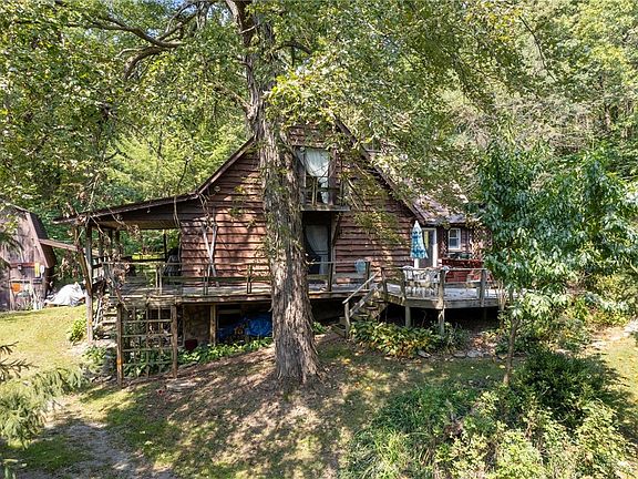 Discover your mountain get away with this inviting 2 to 4-bedroom chalet, nestled on a private wooded parcel just minutes from Seven Springs Mountain Resort. This cozy retreat combines rustic charm with modern comfort, making it an ideal escape for nature lovers and outdoor enthusiasts. Enjoy ample space for relaxation and entertaining in the family room, featuring expansive windows that offer views of the surrounding property to watch the wildlife and a warm wood stove to keep you cozy during chilly evenings. The living room is highlighted by a wood-burning fireplace, creating a perfect atmosphere after a day on the slopes. Embrace the outdoors with the wrap-around covered porch. A small barn on the property provides convenient storage for your toys & tools, ensuring that everything you need for your adventures is within reach. Experience the tranquility & beauty of mountain living with this unique chalet, offering both comfort and practicality in a stunning natural setting!