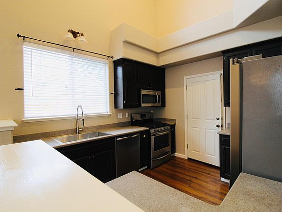 Enjoy this fresh and bright home in Santa Rosa! There is one bedroom and full bath downstairs, with wood flooring throughout this level. This bedroom would also be perfect as your "work from home" space. The kitchen is updated and there is a sliding glass door for lots of light that leads to the private back yard. The living room has a cozy gas fire place. Upstairs are two spacious rooms. The master has its own bathroom, and there is a hall bathroom. There are plenty of closets for storage, and a two car garage. The owner is paying to keep up the welcoming landscaping front landscaping and it the back is a concrete patio and mulch. Plenty of room for you to grow tomatoes in containers! Please drive by, but DO NOT DISTURB OCCUPANTS OR VENDORS. All properties are smoke and marijuana free. Call us to get a link to make an appointment to view. Apply online after viewing the property. We apologize but we can not answer all calls or emails on this vacancy due to the call volume. Our tenants enjoy an online portal to pay rent electronically and submit maintenance requests. PLEASE NOTE: Rental listings subject to change at any time. Agent believes all information contained herein to be correct but assumes no legal responsibility for the accuracy, any errors, or any omissions in this ad or any syndicated ads on third party websites. This is a long term month-to-month tenancy, with a security deposit required. One dog under 25 lbs and up to two cats will be considered and will increase the deposit by $200 each. Future tenants must have proof of Renter's Insurance before occupying the property. All utilities are the responsibility of the tenant. The washer and dryer are offered without warranty. The owner is not accepting cosigners at this time.