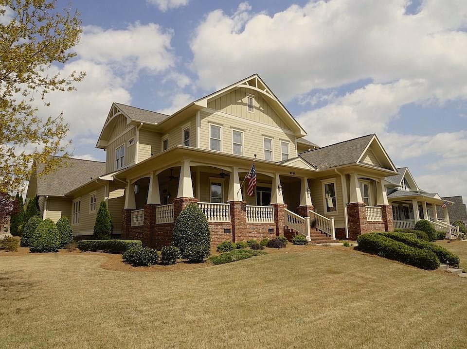Lovely Well Maintained Craftsman Home is waiting for you. Large wrap around front porch welcomes guests and great place to sit in the evenings, watch neighbors stroll by and chat, Enjoy your morning coffee or evening cocktails. Great room with 12' ceilings, fireplace, built ins offer great space for entertaining. Kitchen open to great room and equipped with island, granite, back splash, built ins, walk in pantry. Over sized breakfast room could be used as keeping room. Separate dining room, sun room overlooking patio and water feature. Surround sound in media room. Recently finished room over garage offers bedroom, full bath, and closet.