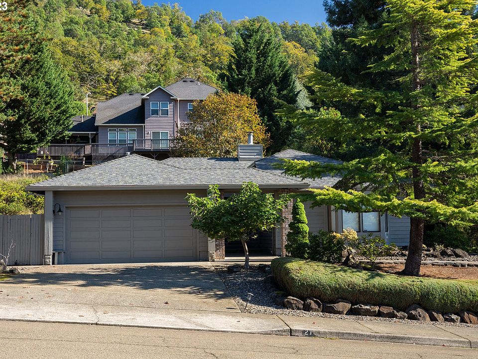 Just a little more sophisticated! From the extra wide sidewalk up to the front courtyard, the flag stone patio with water feature and trex deck, this custom, one level home won't disappoint. The living room features vaulted ceiling and a cozy woodstove. The kitchen is compact but offers lots of storage and granite counters. The primary bedroom has double closets, a built-in window seat and a beautiful bathroom with custom walk-in tile shower and large tub. The mature landscaping has been professionally maintained but requires no mowing. This lovely home is walking distance to shopping, movie theatre and restaurants.