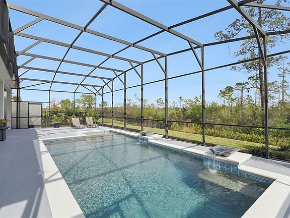 Why wait to build when you can move right into a turnkey home and start enjoying the Florida lifestyle immediately? From day one, savor effortless living with a private screened pool, outdoor kitchen designed for entertaining, and a carefree, resort-style atmosphere that turns every day into a vacation. Live the resort lifestyle that you are dreaming of every day in this stunning Del Webb Sunbridge home featuring the RENOWN floor plan - the most sought after floor plan. This beautiful home is perfectly set on an oversized lot with unobstructed conservation views. Step outside to your private pool, outdoor kitchen and expansive lanai and enjoy privacy with nature as your backdrop — the ultimate Florida retreat. Inside, this home impresses instantly with tray ceilings, quartz countertops, crown molding, and custom window treatments throughout. A spacious home office provides the perfect place to work or unwind. Every bedroom features its own private ensuite and walk-in closet, giving guests the comfort of a luxury stay. The primary suite elevates the experience with light-blocking blinds and a beautifully updated dual shower. The primary bedroom has two closets for added convenience and organization. The primary bathroom has grout free marble look Carrara wall panels providing durable seamless luxury aesthetic that resists mold and mildew. The kitchen includes a convenient coffee or beverage bar, adding both function and charm to the space. Love to entertain? The outdoor kitchen area is ready for gatherings, and the home is fully equipped with natural gas for the cooktop, tankless water heater, and even the laundry room dryer. The oversized 3-car garage offers extra depth and a sleek epoxy floor. Pull down stairs provide easy access to the garage attic, which includes a reinforced platform for additional storage. The brick paver driveway adds to the home’s curb appeal and low-maintenance charm. The private salt water pool features an electric heater and new pool pump (replaced in November 2025) and includes a 3-year transferable warranty. Enjoy carefree living as the community handles the landscape maintenance. Flex space in the laundry room adds versatility for storage, hobbies, or organization, and there is lots of storage in the home throughout. The home includes a Kind whole house water filter and salt-free softener system with UV water purification. Gutters are installed on the house. Located in Del Webb Sunbridge, a premier 55+ community, residents enjoy an unmatched lineup of amenities including a 27,000 sq ft clubhouse, Tavern & Grille, 24 hour guard-attended entry, two pools, tennis and pickleball courts, dog park, fitness center, walking trails, and a full-time lifestyle director offering a robust calendar of social events and activities. This home blends luxury, comfort, and an exceptional community lifestyle—ready for you to enjoy.