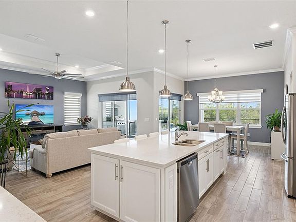 Private screened poolExpansive lanaiSpacious home officeQuartz countertopsTray ceilingsCrown moldingCustom window treatments throughout