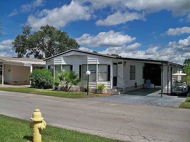 Partially furnished 2 BR 2 BA home with a panoramic view of the 6th hole from your FL room with a wet bar and central AC. 2 Storage Sheds. 12 X 35 Screen room, 12 X 27 Carport. Inside Laundry. Large Open kitchen with breakfast bar, huge living room and Master Suite. This home is a must see.