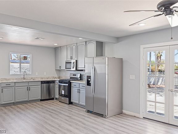 REDUCED!!! BEAUTIFULLY APPOINTED AND COMPLETELY RE-DESIGNED AND RE-MODELED 4 BEDROOM SINGLE STORY HOME SITUATED ON A GATED CORNER LOT!!! EASY ACCESS TO SCHOOLS, SHOPPING, COMMUNITY PARKS, FREEWAY ACCESS AND MINUTES FROM THE STRIP!! OPEN FLOOR PLAN WITH HIGH LEVEL WATERPROOF VINYLE FLOORING THROUGHOUT, NEW CUSTOM PAINT SCHEMES, UPGRADED BASEBOARDS AND RE-TEXTURED CEILINGS! OVERSIZED FAMILY ROOM AT ENTRY WITH CEILING FANS, GOURMET KITCHEN WITH LEVEL 3 GRANITE CONTER TOPS, RAISED PANEL GREY MAPLE CABINETS, BRAND NEW STAINLESS APPLIANCES JUST THE PERFECT PALCE TO ENTERTAIN FAMILY AND FRIENDS! LARGE PRIMARY BEDROOM WITH SPA LIKE BATH, 3 ADDITIONAL ROOMS WITH FANS AND AN ADDITIONAL RE-DESIGN SPA BATH! DEN AREA CAN EASILY BE CONVERTED TO 5TH BEDROOM IF NEEDED OR EXTENSION OF KITCHEN AREA OR MAKES THE PERFECT OFFICE, GYM OR FAMILY ENTERTAINMENT ROOM, GATED PRIVATE YARD AT FRONT LARGE ENOUGH FOR RV AND PRIVATE REAR YARD PERFECT PLACE TO RELAX AFTER A LONG VEGAS DAY WITH FAMILY AND FRIENDS!