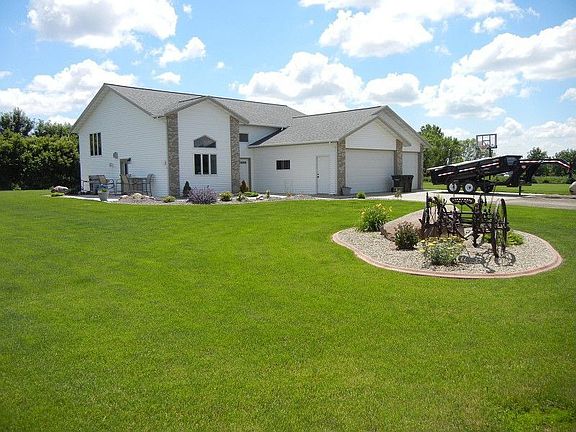 ZONED FOR 2 HORSES, "park like" setting OVER 4 ACRES with 30' x 40' HEATED & AIR CONDITIONED SHOP w/overhead doors on the front & side, heavy duty work bench & overhead storage. Very private setting w/large fire pit, mature trees across the back & well established trees on the other three sides. Three level home w/very open floor plan, CENTER ISLAND IN THE KITCHEN & a GAS FIREPLACE in the dining room. Upper level living room, laundry room & 2 bedrooms including a master bedroom suite w/private bathroom featuring a whirlpool tub & walk-in closet. The lower level has a 2nd access to the garage, very large bathroom & an unfinished family room, 2 additional bedrooms (1 partially finished). The attached triple garage has a floor drain, is insulated & heated floor drain & has hot/cold water plus an interior dog kennel with access to an outdoor kennel. 2 water heaters, heat pump w/off peak electrical backup plus a high efficiency furnace. Finished sq ft in lower level is approximate.