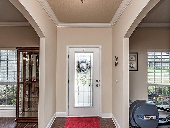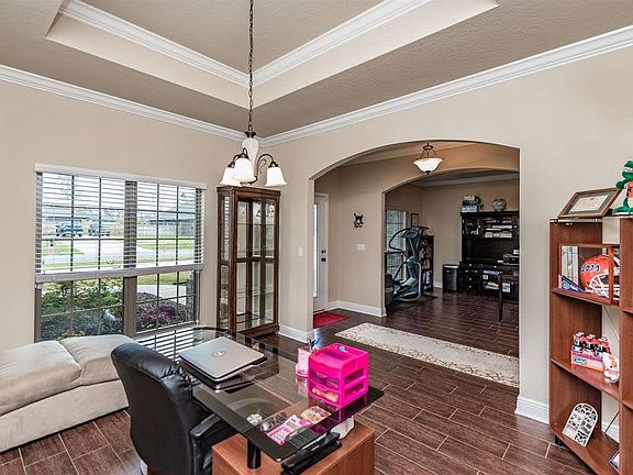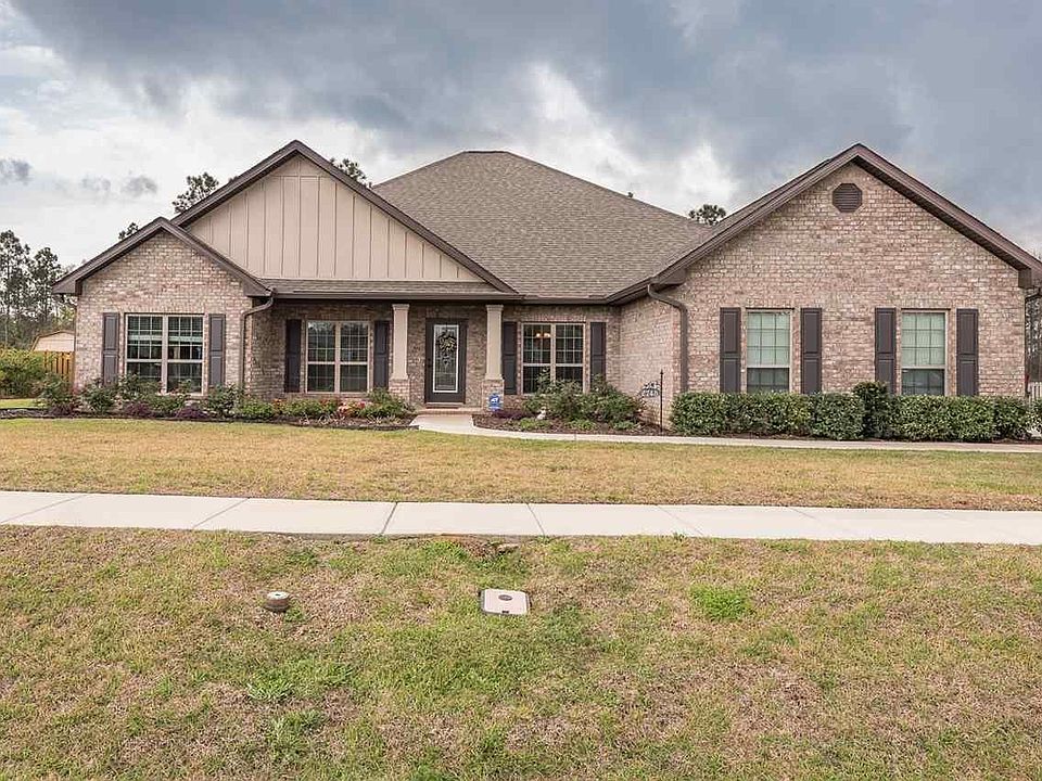 This all brick Kingston floor plan is a 4/3, 3014 sq ft, that sits on a half-acre lot. As you enter through a beautiful nouveau front door, you are greeted by a foyer with formal dining, and an office/bonus space. Tile floors throughout, with carpeted bedrooms. Family room has crown molding, double tray 11 ft. ceilings, fireplace, and pre-wired surround sound. Beautiful kitchen with diamond tile pattern, granite counter tops, GE stainless steel appliances, under cabinet lighting, recess lighting, dark stained cabinets, walk-in pantry, and large island. This home has a split floor plan, with one of the additional bedrooms having its own on-suite bathroom perfect for guests. All bathrooms have granite counter tops, with a spacious master bath which includes a ceramic tile shower, double vanity, deep separate tub, water closet, and a walk-in closet that is to die for! This home has an added asset of a large screened in porch overlooking the backyard. Plenty of room for storage of your Fabric Shield Hurricane shutters in the built-in storage area above the 3 car side-entry garage.