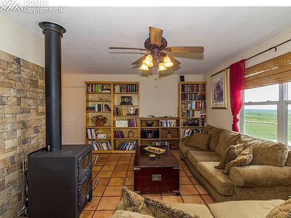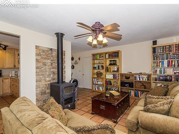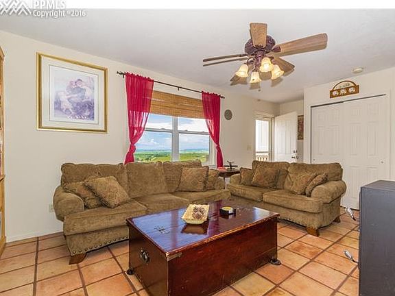 Perched among the rolling hills, this semi-custom built home has modern amenities throughout. Surrounded by 9.61 acres of natural meadow horse property assures plenty of privacy & panoramic views of the mountains & plains. Saltillo terra cotta tile floors greet you as you enter the open great room & flow throughout the main level. The cast iron wood burning stove & large windows letting the natural light pour in create an environment you won't want to leave. The adjoining kitchen features gas range/oven, stylish formica counters, maple cabinets & includes all appliances. The kitchen opens to the dining space perfect for entertaining family & friends. From here you can walk out to the concrete patio w/pergola & fenced yard. Upstairs the main level master suite boasts ceiling fan, & private adjoining full bath. 2 other upper level bedrooms share oversized hallway full bath. The lower level family room offers a flexible space w/pellet stove & walks out to the enclosed sunroom boasting views of Pikes Peak. The lower level also has a guest bedrm w/nearby ½ bath. Basement has multi-purpose rm w/slate tile floors, storage rm, & office/bedrm. Bonus features include; detached 3 car shop, fenced property w/barbless wire, storage shed, 6-panel doors, vinyl energy efficient windows, low maintenance landscaping, & many more. This stunning home is surrounded by the wonders of natural Colorado, yet in proximity to all the conveniences offered by neighboring cities. See it today!