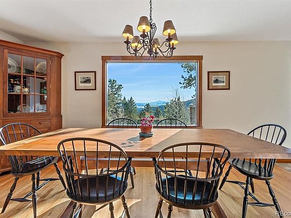 Peace, seclusion, gorgeous land, stunning views await the discriminating buyer of this tastefully appointed custom designed mountain home in Conifer. Ideally situated on 6.34 level to gently sloping wooded acres with old growth trees, this property is perfect for walking the pups, enjoying nature, views of Pikes Peak, Mt. Evans, impressive rock outcroppings. The kitchen features custom cabinetry with an island, built in appliances, wood floors, granite countertops, a bay window, breakfast bar, and again, amazing views. Designed for main floor living, there are no stairs to the elegantly placed entry with powder bath. The master suite with a private deck is on the main floor, as is the laundry/mudroom with utility sink. The lower level has a brand-new full bath, mini kitchen & office (possible bedroom) & an extraordinary unfinished space that allows valuable expansion potential with its own driveway & entry. The new suite and adjoining family room could be a separate guest space. The 4-c garage/ workshop is heated, with over 1100 sq ft & has an office! The 864 square foot garage is currently a woodshop. There is a 304 sq. foot. lower level that could be a separate workshop tack room /barn. The newer septic system is designed for 4 bedrooms. The well is household use yet has an approved provision for the watering of non-commercial domestic animals